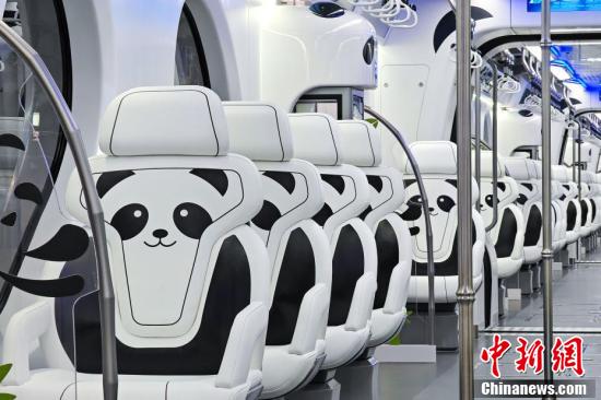 国内首列“熊猫主题”跨座式单轨列车的熊猫元素座椅。